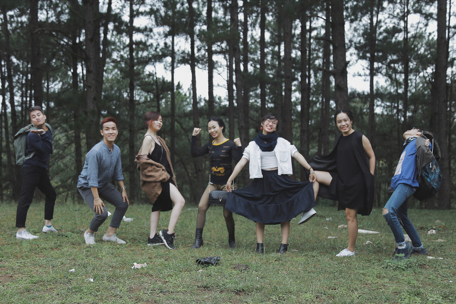 Kiểu chụp nhóm này dường như chưa bao giờ hết "hot" trên newfeed của Facebook, Instagram. Không cần làm kiểu phức tạp, không cần cả nhóm phải tạo dáng một kiểu, làm khác đi bằng cách"mạnh ai lấy chụp".