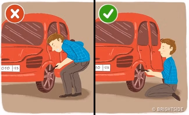 6. Thay lốp xe. Mỗi người chủ sở hữu xe hơi đều gặp vấn đề khiến họ đau lưng này.