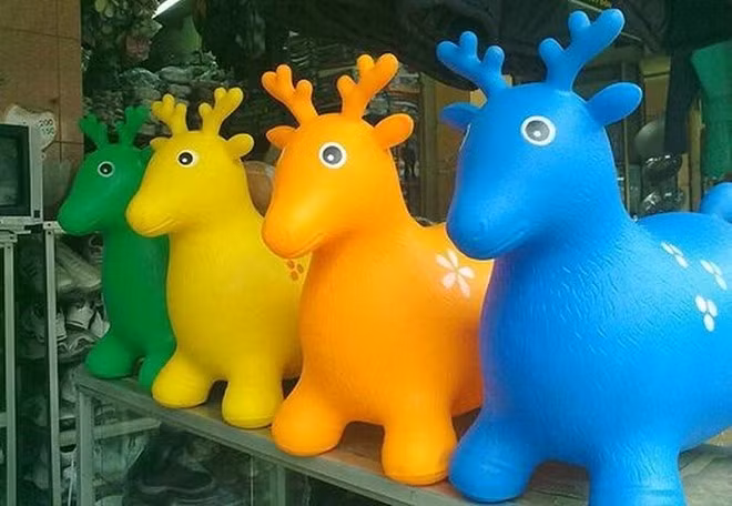 Chất độc trong thú nhún bơm hơi gây ung thư, phá hủy hệ thống hormone của cơ thể. Ảnh: Facebook.