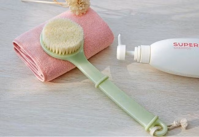 Cọ tắm cán dài: Chúng rất thích hợp dùng để kì lưng. Các bạn nên biết rằng khi tắm phần lưng có thể là điểm mù dễ bị bỏ qua, nhưng lượng dầu tiết ra ở khu vực này rất lớn, nên nhất định phải vệ sinh sạch sẽ nếu không sẽ dễ bị mọc mụn.