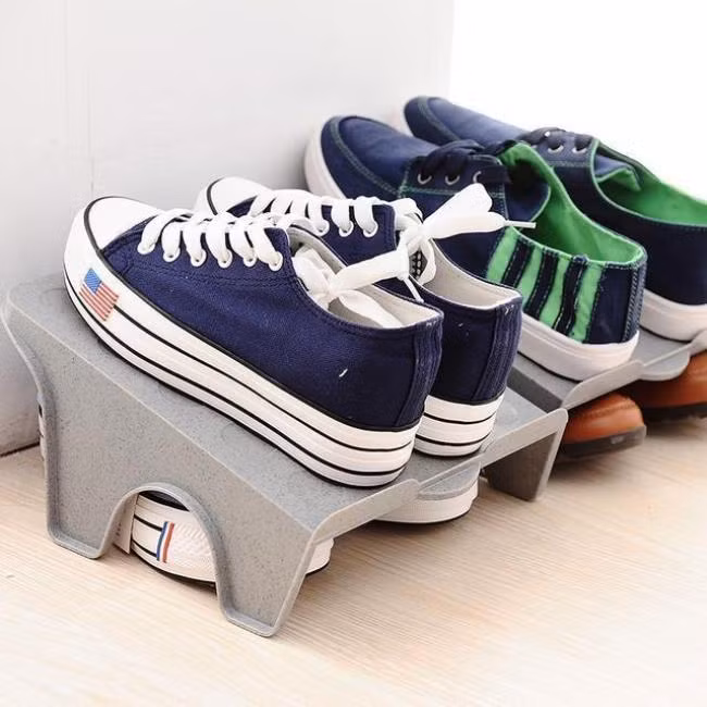 Trong nhà có một đống giày không có chỗ để: Có những lúc ngay cả tủ giày cũng chật cứng chỗ để, nhìn thôi cũng khiến ta đau đầu rồi. Thực ra bạn chỉ cần chuẩn bị chiếc giá để giày như hình trên là bạn có thể giải quyết được vấn đề này.