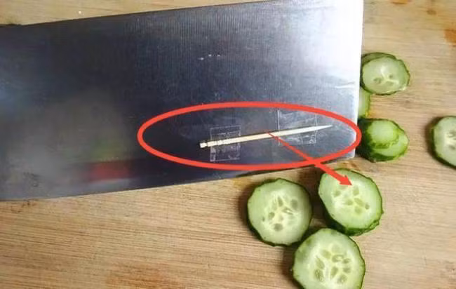 8. Bình thường khi thái thức ăn, chúng thường bị bám lại trên dao, khi đó bạn chỉ cần cố định một chiếc tăm ở trên dao, khi bạn thái thức ăn chúng sẽ không bao giờ bị dính ở trên nữa. Bạn có thể tự tin thể hiện khả năng dùng dao của mình.