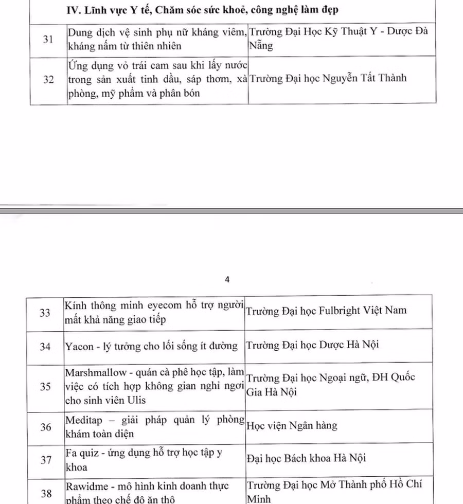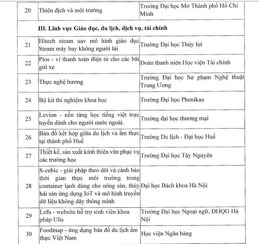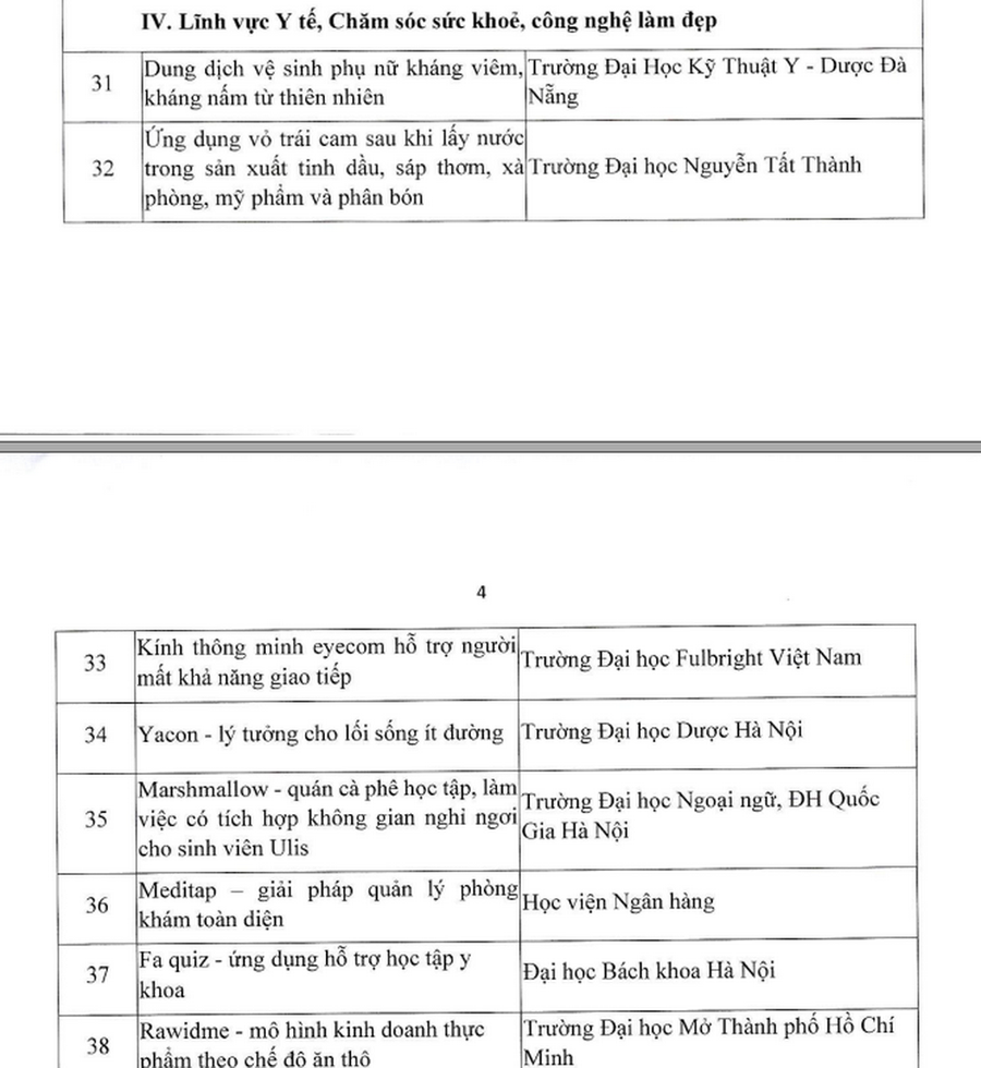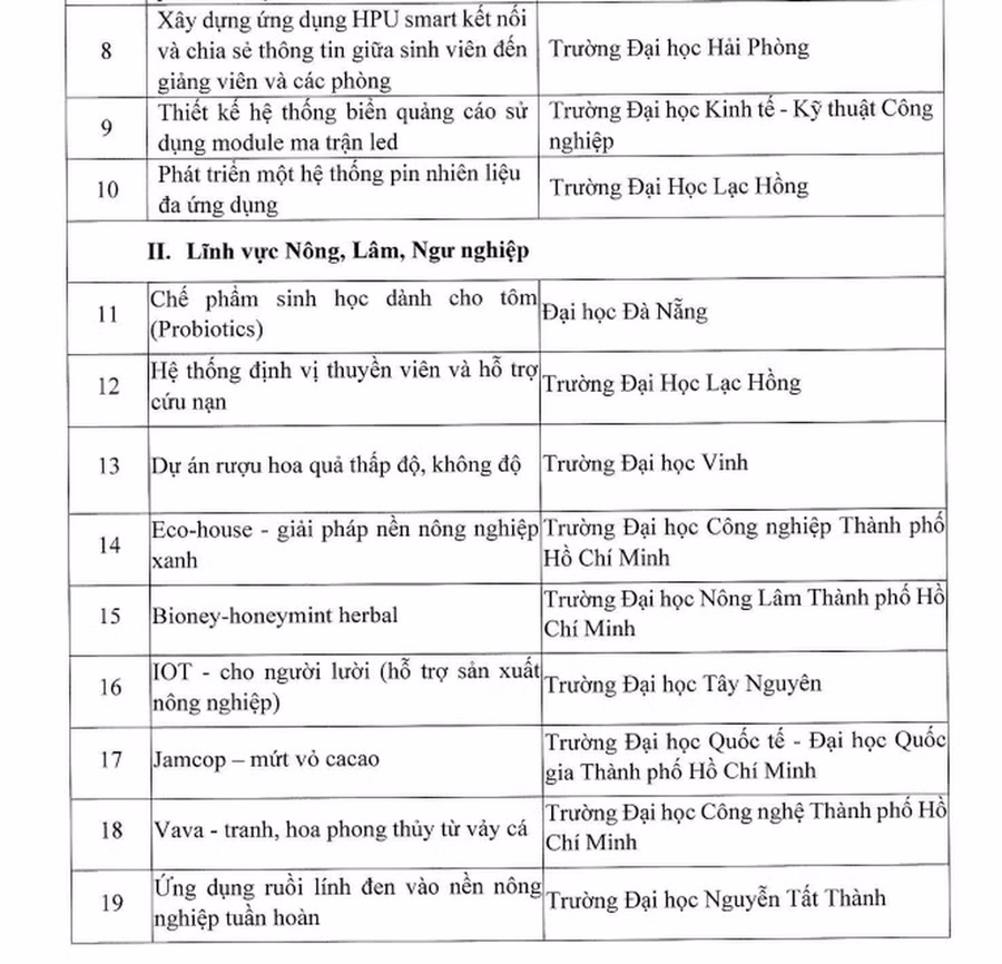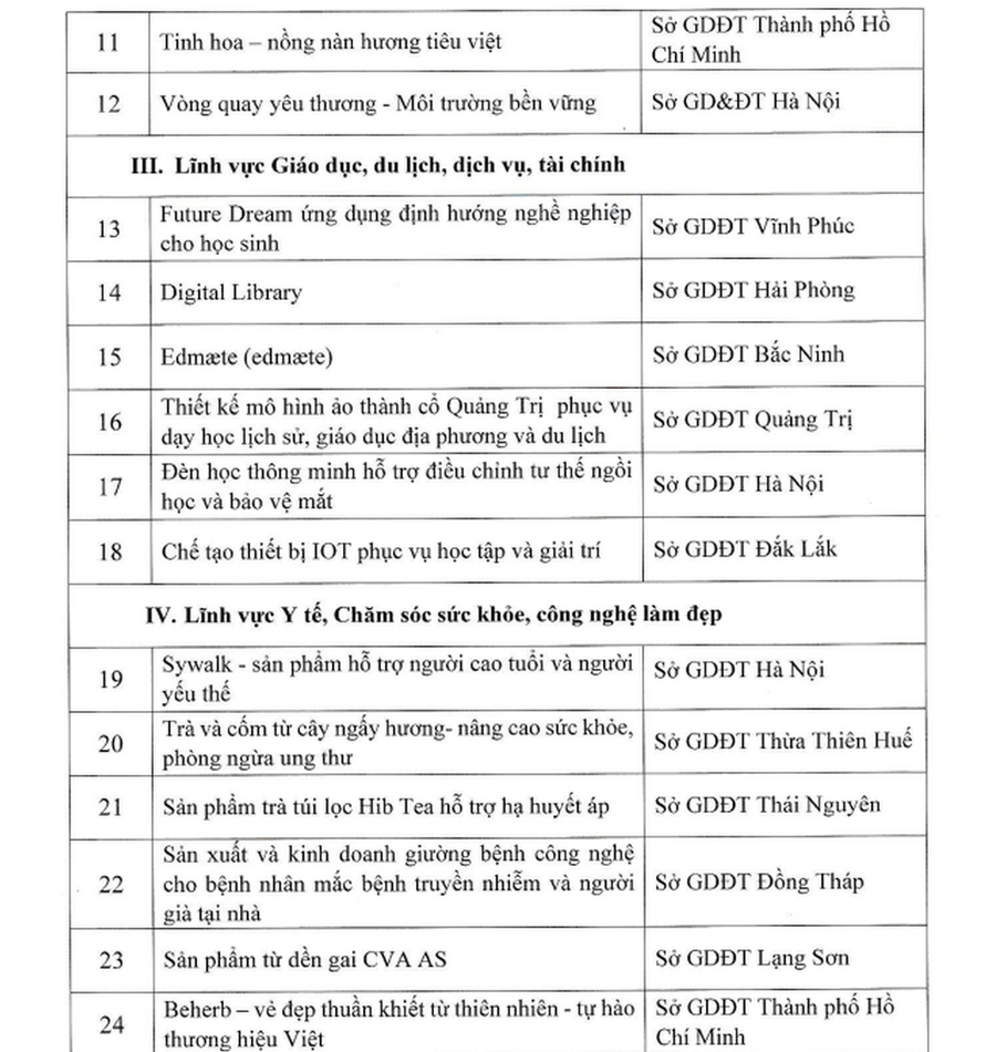 Theo kết quả công bố của Bộ GD&ĐT, có 50 dự án, ý tưởng của sinh viên và 30 dự án, ý tưởng của học sinh THCS, THPT được lọt vào vòng chung kết Cuộc thi “Học sinh, sinh viên với ý tưởng khởi nghiệp” lần thứ V.