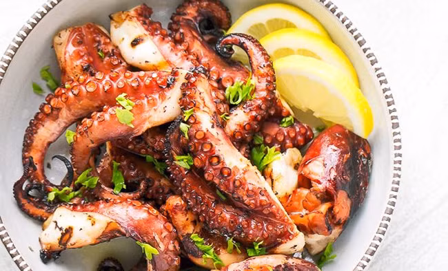 1, Sơ chế bạch tuộc, rửa với nước muối loãng.