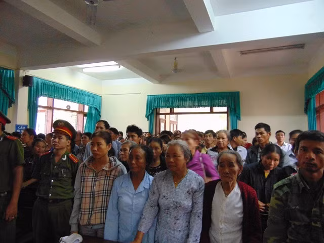 Cả 9 bị cáo bị xét xử về tội “gây rối trật tự công cộng” đều ở xã Hương Bình, gồm: Trần Hữu Bá (53 tuổi), Phan Ngọc Lai (55 tuổi), Bùi Xuân Đường (44 tuổi), Phan Thế Vỵ (37 tuổi), Dương Đức Lý (50 tuổi), Lê Đăng Thắng (42 tuổi), Phan Thị Lý (50 tuổi), Đặng Thị Hoa (38 tuổi), Hoàng Thị Liên (45 tuổi).