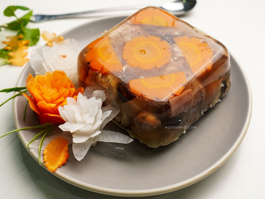 Thịt đông là một trong những món ăn ngày Tết đặc trưng của người dân miền Bắc. Thịt đông có màu nhàn nhạt của thịt, khi đông sẽ có một lớp váng mỡ trắng mịn trên bề mặt. Khi ăn sẽ cảm nhận được độ mềm, ngậy, thơm béo của miếng thịt, mộc nhĩ giòn, thêm vị man mát của rau câu vô cùng hấp dẫn, đưa cơm.