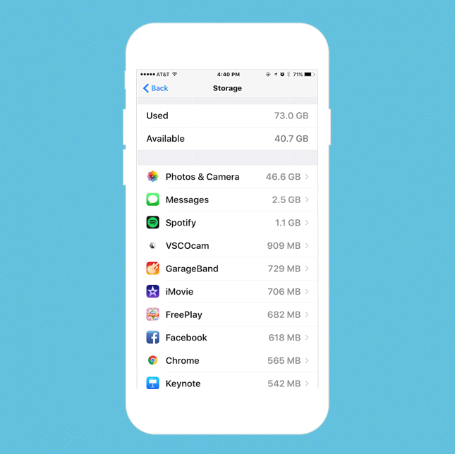 Để có cái nhìn trực quan hơn, bạn vào Settings > General > Storage & iCloud Usage > Manage Storage. Các phần mềm trong iPhone sẽ được liệt kê theo mức dung lượng để người dùng cân nhắc xóa.