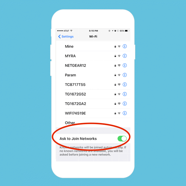 Bằng cách không cho phép iPhone tự kết nối với mạng Wi-Fi, người dùng có thể cải thiện một chút tốc độ máy. Vào Settings > Wi-Fi và bật mục Ask to Join Networks.