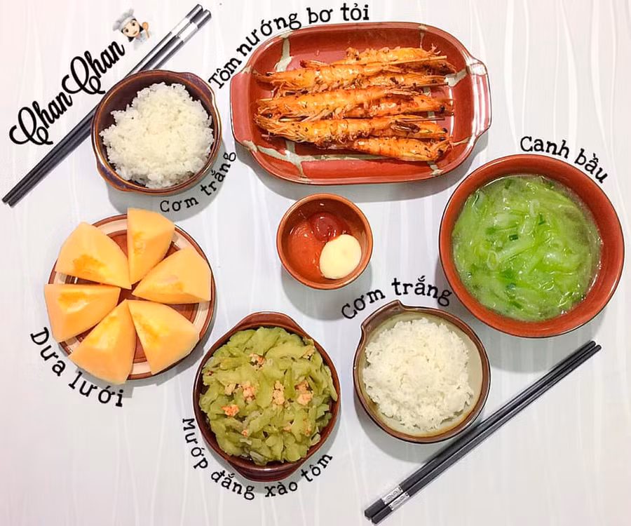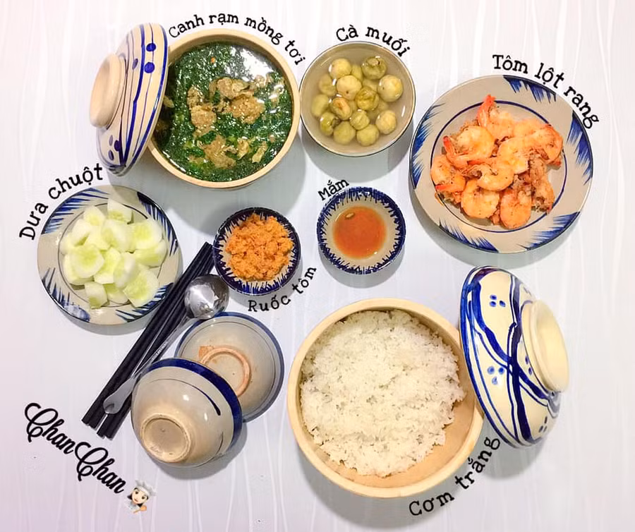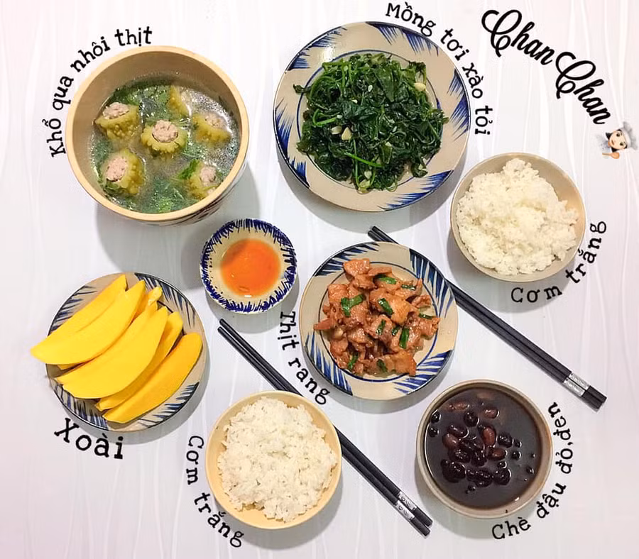 Dĩ nhiên các món mặn như kho, rim, thỉnh thoảng còn có các món rán vẫn xuất hiện trên mâm cơm nhà Trang nhưng khi ấy sẽ có món canh giải nhiệt đi kèm, hoa quả tươi mát tráng miệng.