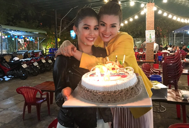 Bất ngờ sau sự kiện, nàng Hậu Tiểu Vy cùng ekip chuẩn bị bánh kem và hát mừng sinh nhật Á hậu Diễm Trang, khi ngày cô tròn 28 tuổi gần cận kề.
