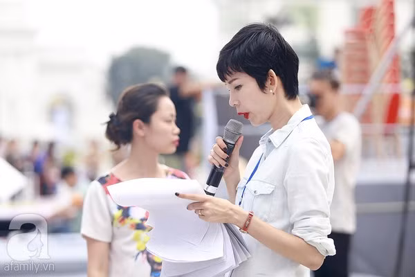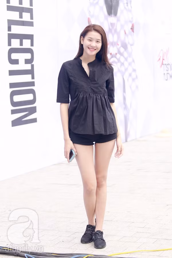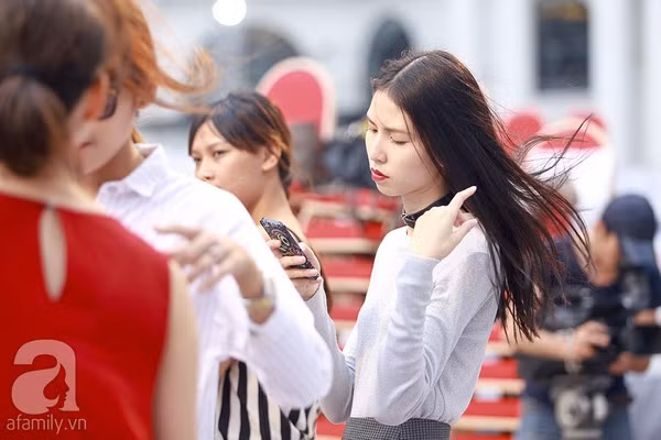 Huyền My nhí nhảnh với trang phục trẻ trung thường ngày trong buổi tổng duyệt, nhưng cô vẫn rất nổi bật.