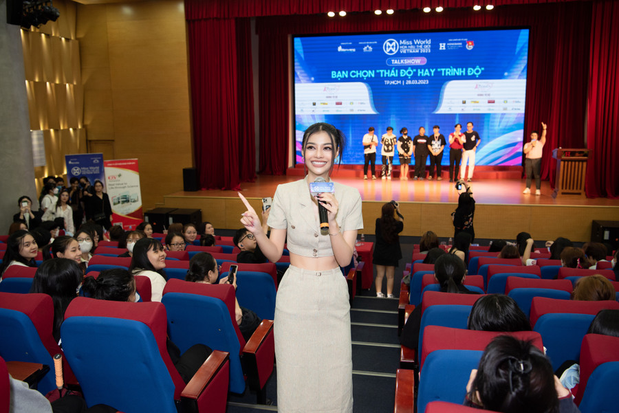 Hoa hậu Thiên Ân, Á hậu Kiều Loan và Á hậu Ngọc Hằng đã xuất hiện tại trường Đại học Hồng Bàng trong buổi talkshow “Bạn chọn Thái độ hay Trình độ”.
