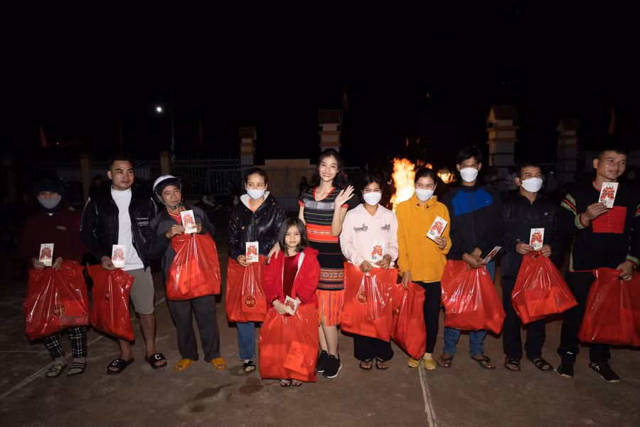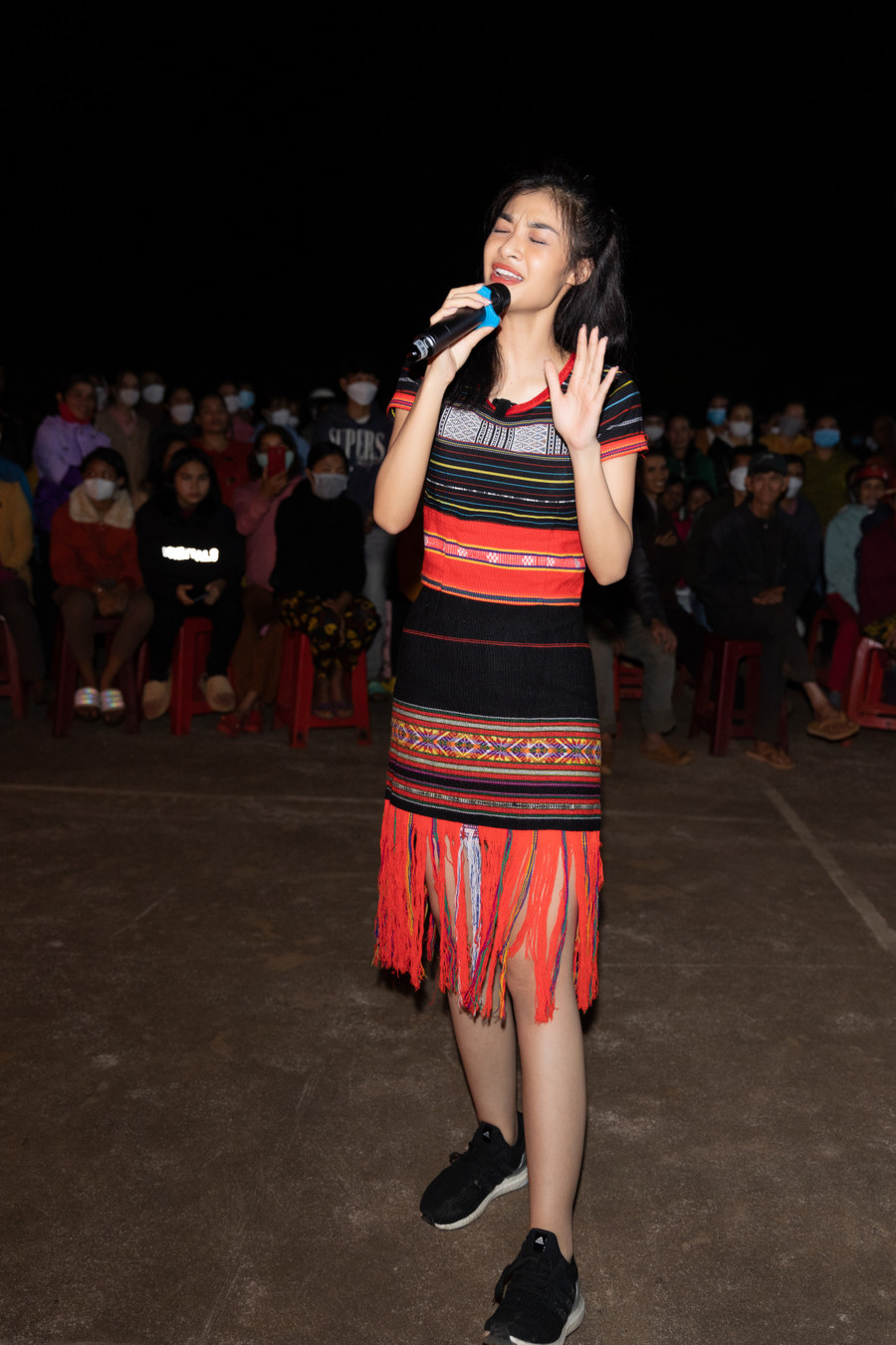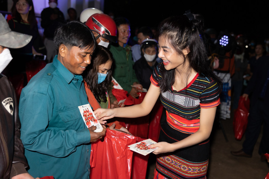 Đáp lại tình cảm của nàng hậu, người dân nơi đây đã có sự tiếp đón Lona và đoàn vô cùng nồng nhiệt với màn biểu diễn vũ điệu cồng chiêng, điệu múa truyền thống người Ê-đê cùng nghi thức mời rượu độc đáo. Buổi trao quà diễn ra vô cùng ấm cúng bên lửa trại ngay tại Nhà văn hoá xã DLiê Yang.