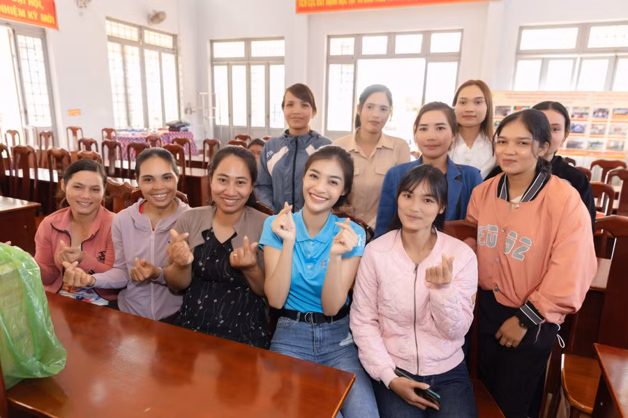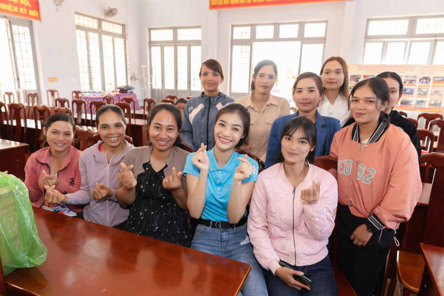 Khác biệt với những dự án “Tết Hạnh Phúc” của các Hoa hậu - Á hậu nhà Sen Vàng, Lona cùng các bác sĩ bệnh viện Việt Mỹ đã đặc biệt chuẩn bị một phần chia sẻ kiến thức chăm sóc sức khỏe tuổi dậy thì, chăm sóc sức khỏe sinh sản cho phụ nữ, thanh thiếu niên là nữ trên địa bàn xã.