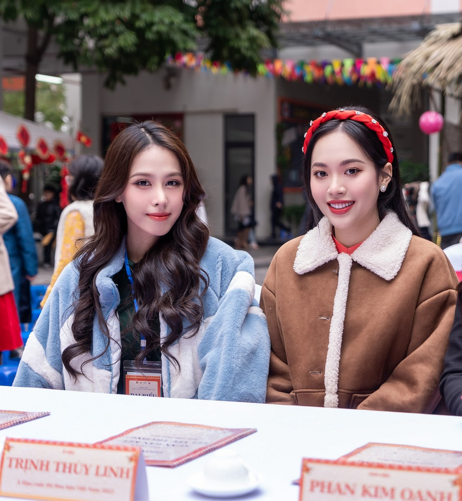 Tại đây, hai nàng hậu cùng các bạn học sinh, sinh viên giao lưu với những tiết mục mang đậm sắc Xuân mang lại không khí vui tươi.