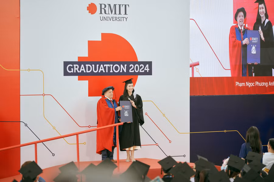 | Á hậu Phương Anh tốt nghiệp Thạc sĩ Thương mại Toàn cầu tại Đại học RMIT. |
