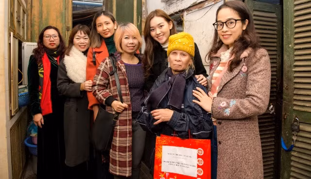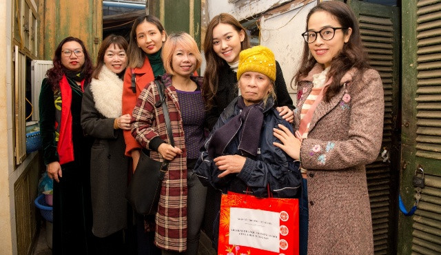 Giữa tiết trời Hà Nội lạnh giá, Tường San cùng mọi người mang những phần quà Tết gửi tới các cụ cao tuổi cô đơn không nơi nương tựa trên địa bàn quận Hoàn Kiếm.