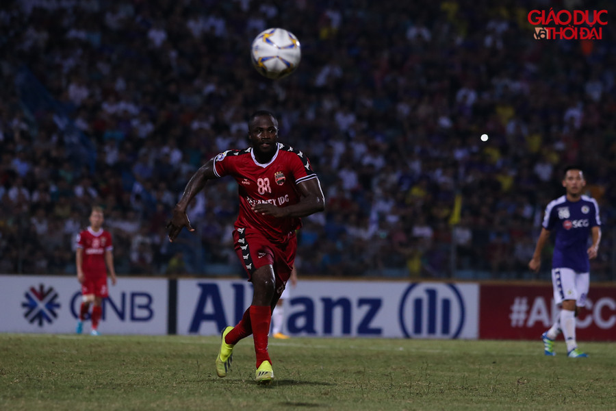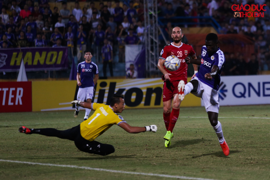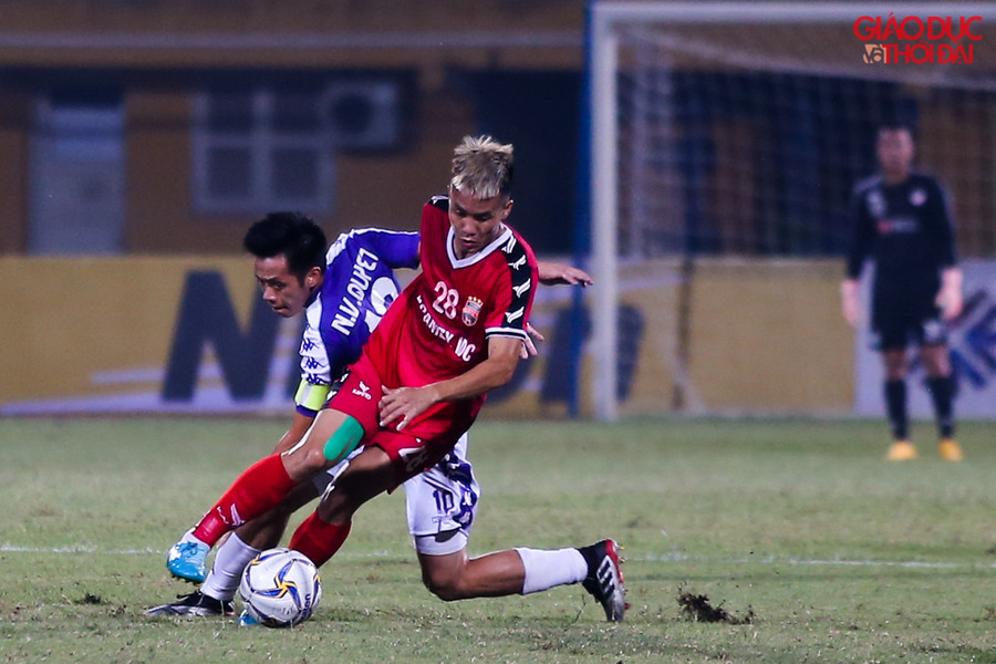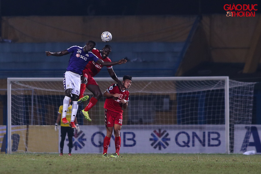 Sau những phút đầu để đội khách "tự do bắn phá" khung thành Văn Công, Hà Nội FC có pha đáp trả với cú dứt điểm của Pape Omar từ đường căng ngang của đồng đội.