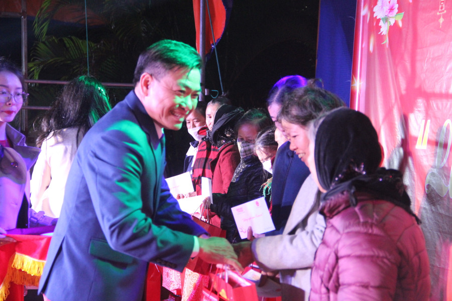 | Tại chương trình BTC đã trao 92 suất quà cho các hộ dân là đối tượng khó khăn, người già neo đơn, người bị bệnh hiểm nghèo... tại xã Cẩm Vịnh. |