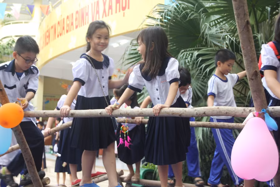 Cũng trong ngày hội, các em nhỏ được trải nghiệm các trò chơi dân gian rất thú vị, cùng nhau đi cầu khỉ, gói bánh chưng...hay tham gia gian hàng em yêu khoa học với nhiều thí nghiệm đơn giản. Ngoài ra, các em còn được thưởng thức một chương trình văn nghệ đặc sắc do các giáo viên, HS và một số nghệ sĩ khách mời thể hiện.