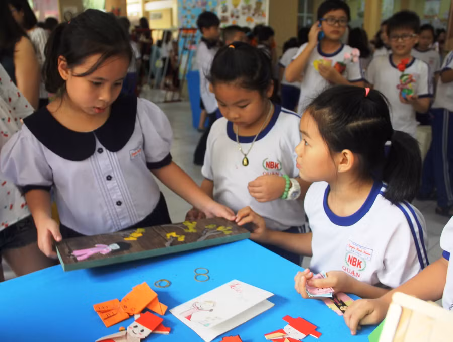Tại ngày hội, HS có thể mua sắm những món quà lưu niệm nhỏ từ các gian hàng của từng khối, gian hàng của phụ huynh HS.