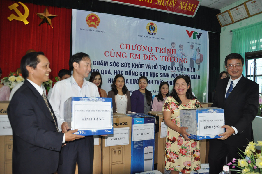 Công đoàn Giáo dục Việt Nam, Công đoàn ĐH Huế, ĐH quốc gia Hà Nội, Trường ĐH Y dược Huế tổ chức trao tặng hàng trăm suất quà cho giáo viên, học sinh với giá trị hơn 200 triệu đồng, gồm: Trường ĐH Y dược Huế hỗ trợ 42 triệu đồng tiền thuốc và vật tư y tế, 40 triệu tiền máy lọc nước; ĐH quốc gia Hà Nội 45 triệu tiền thuốc và bánh kẹo; Công đoàn Giáo dục Việt Nam 25 triệu đồng và 60 triệu đồng của Công ty TNHH Long Hải.