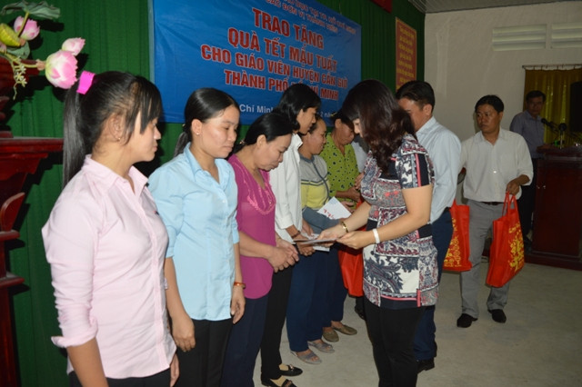 Sau vài ngày chuẩn bị, nhóm thanh niên thuộc NXB Giáo Dục và các đơn vị liên kết như Cty đào tạo và phát triển GD Phương Nam, Cty dịch vụ xuất bản Gia Định, Cty Sách – thiết bị GD Miền Nam, Cty Sách – TBTH TP. HCM đã tập kết được 50 túi quà như lịch treo tường, bánh kẹo, dầu ăn...cũng với 50 triệu đồng tiền mặt để trao tận tay các thầy cô, nhân viên thuộc Phòng GD-ĐT Cần Giờ.
