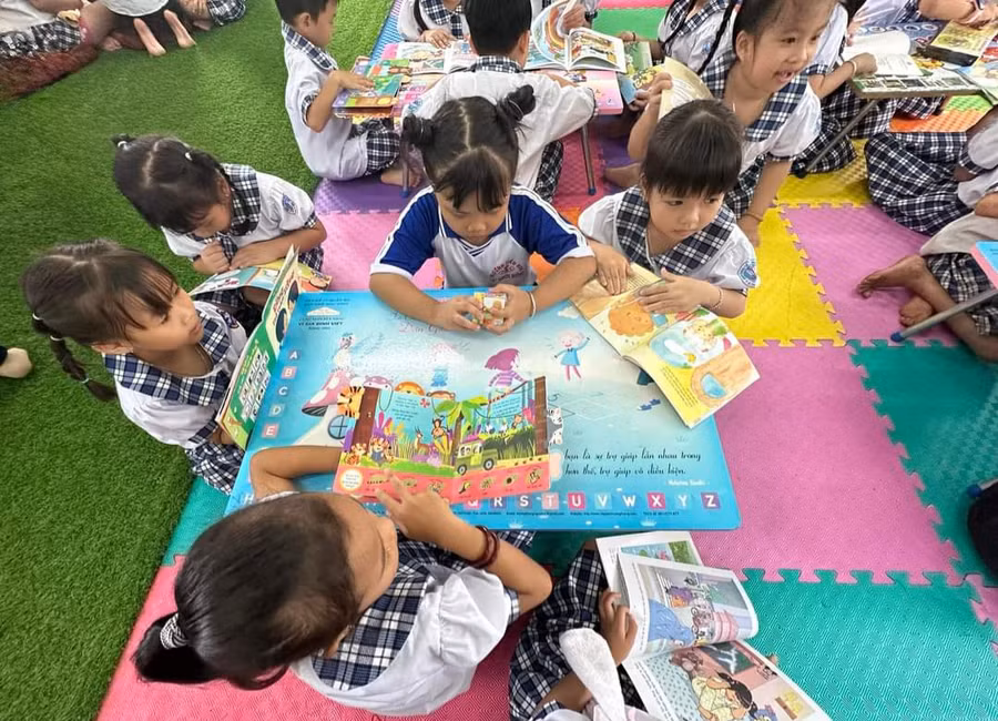 | Thư viện luôn thu hút học sinh thường xuyên đến đọc sách và vui chơi. |