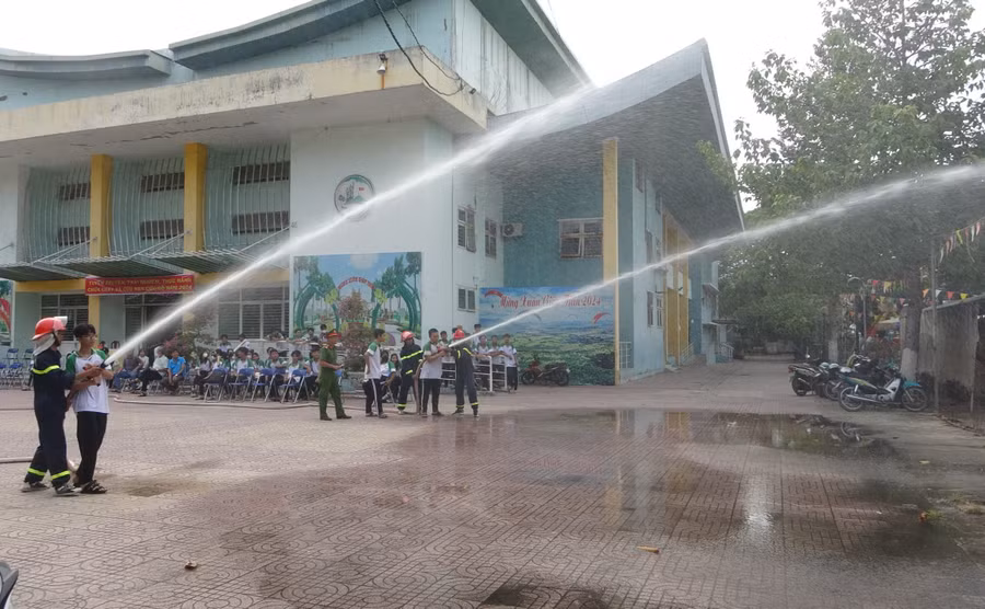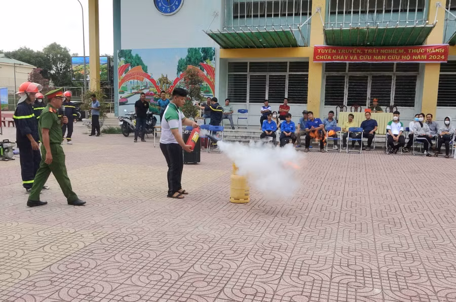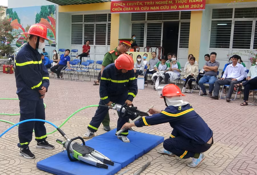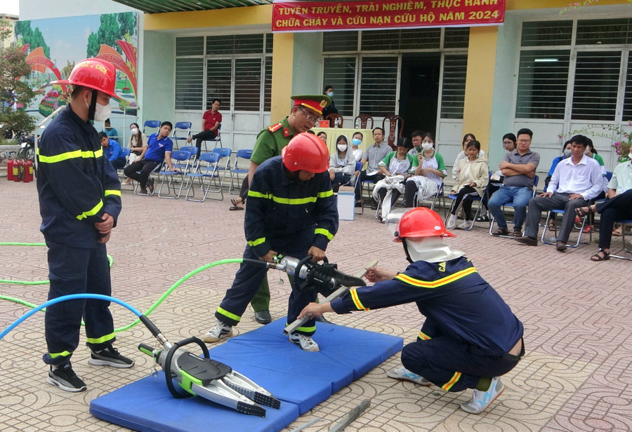 Dịp này, lực lượng công nhân viên chức, các đoàn viên, học sinh tham gia cùng trải nghiệm các thao tác sử dụng bình chữa cháy xách tay dập tắt đám cháy do rò rỉ gas; trải nghiệm cứu người, di chuyển thoát nạn trong môi trường có nhiều khói, sử dụng máy cắt, máy ép sắt phục vụ công tác cứu nạn cứu hộ, thực hành phun nước chữa cháy...