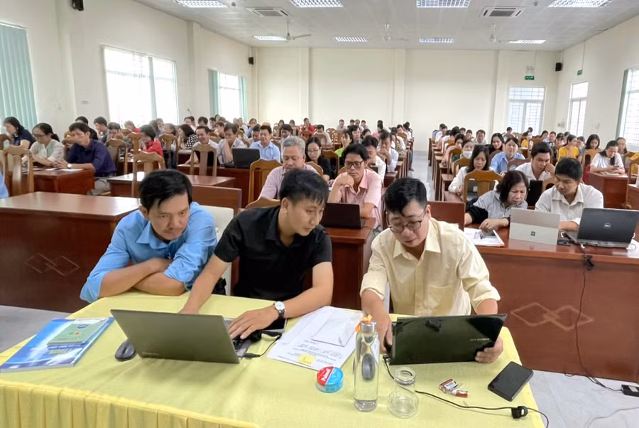 | Giáo viên tham gia tập huấn bồi dưỡng chuyên môn. |