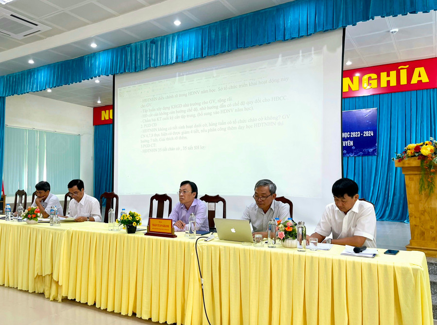 | Đại biểu thảo luận, trao đổi các giải pháp thực hiện nhiệm vụ năm học mới. |