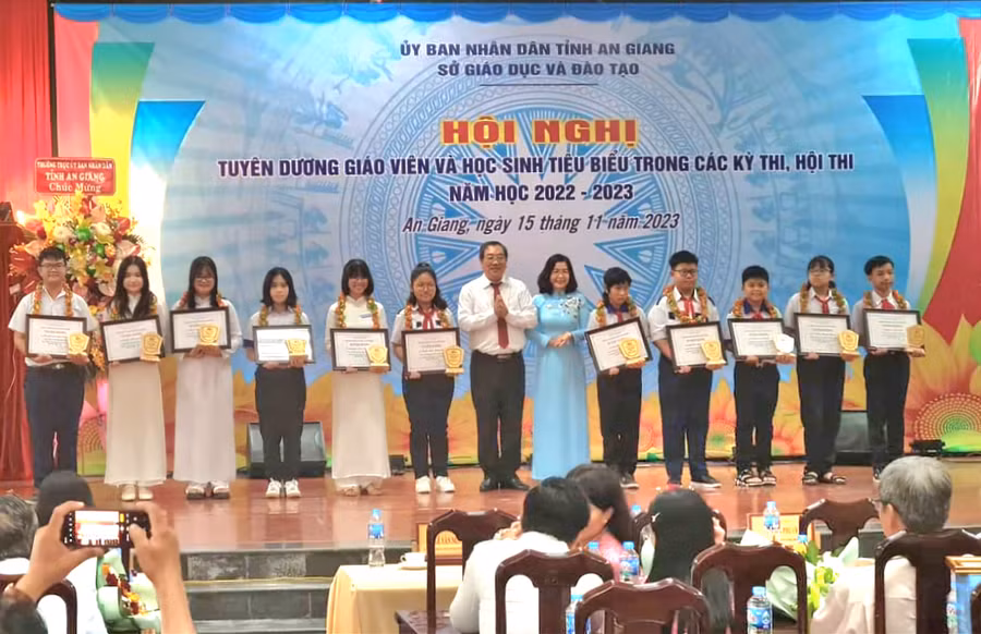 Chiều 15/11, Sở GD&ĐT An Giang tổ chức Hội nghị Tuyên dương giáo viên và học sinh tiêu biểu trong các kỳ thi, học thi, cuộc thi cấp quốc gia và cấp tỉnh năm học 2022 – 2023.