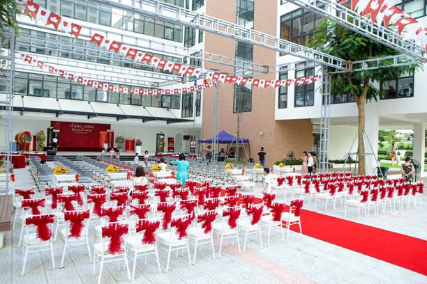 Trường được trang bị cơ sở vật chất hiện đại bậc nhất với hệ thống máy chiếu, bảng từ, bảng nỉ, điều hòa 2 chiều, tường và cửa cách âm, hệ thống loa và âm thanh trong lớp học…