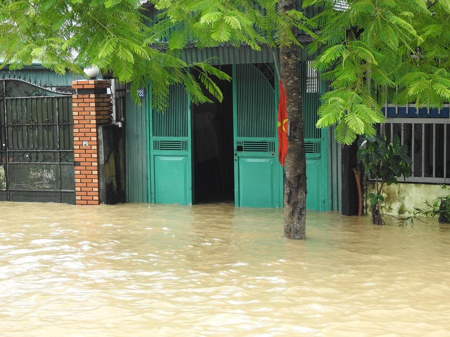 | Nhà dân hai bên quốc lộ cũng bị ngập nước vào nhà. |