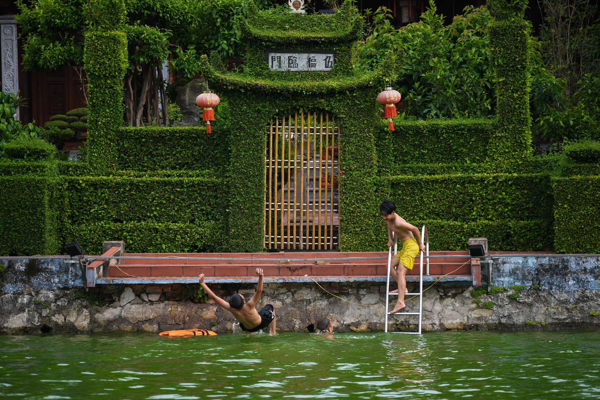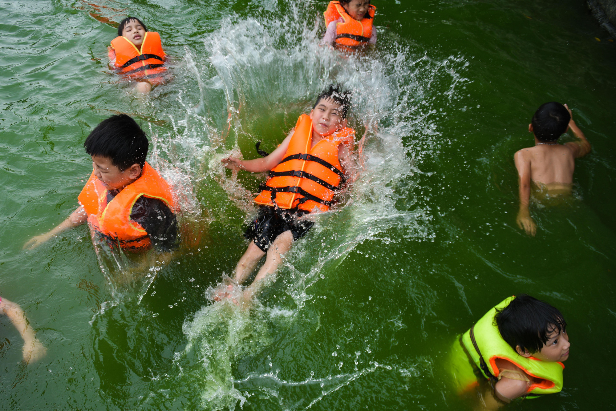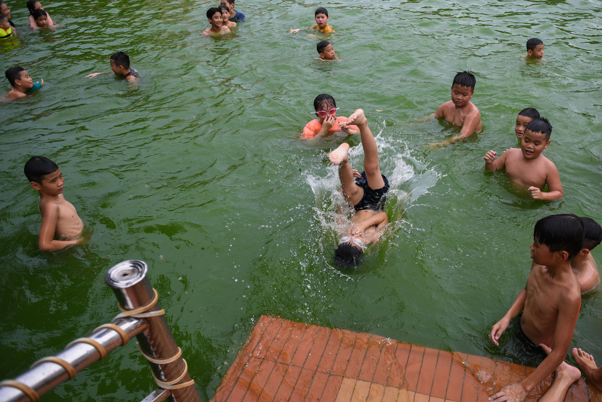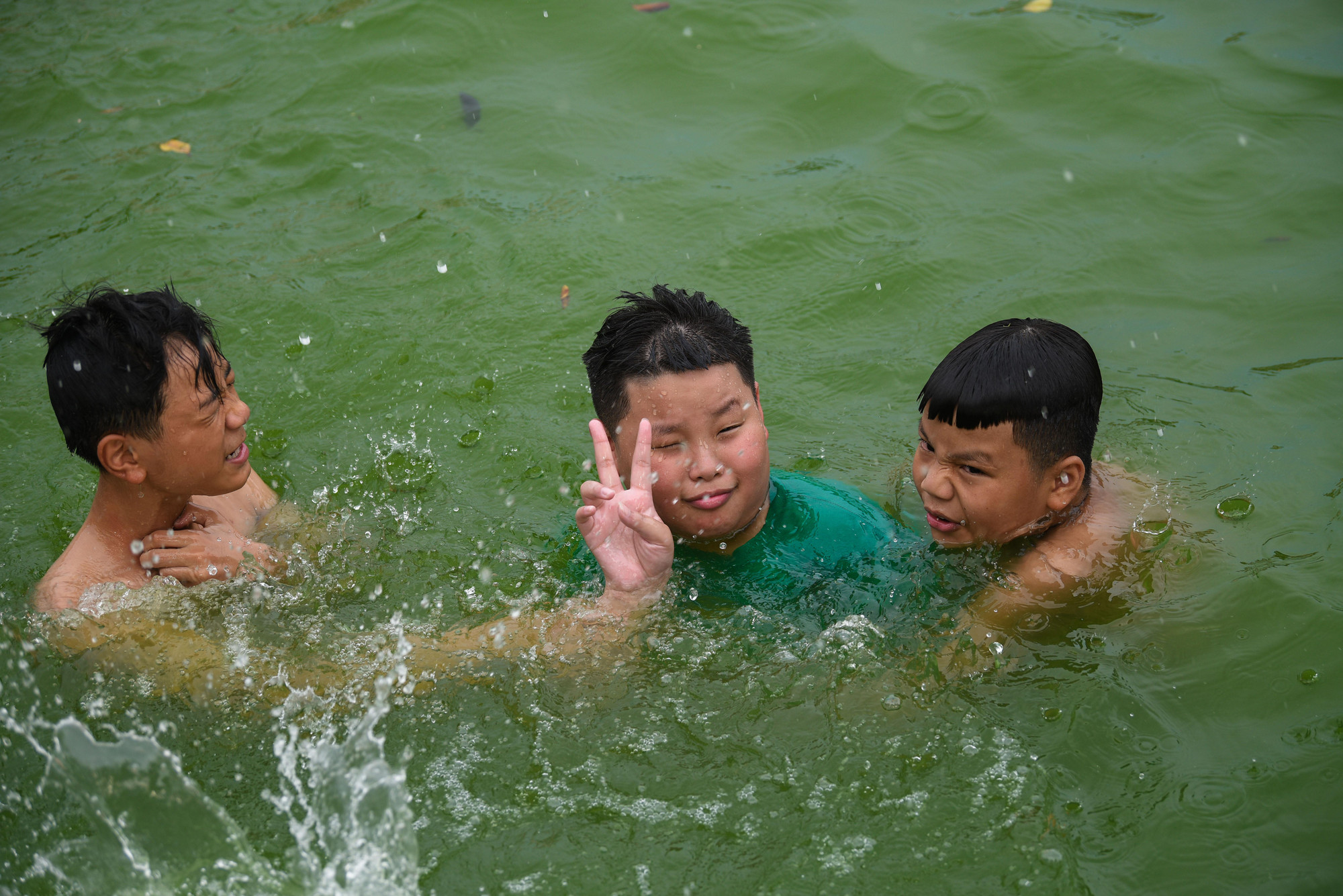 | Vào mỗi buổi chiều, người lớn sẽ dẫn trẻ nhỏ ra đây để tắm ' giải nhiệt' sau ngày nắng nóng. |