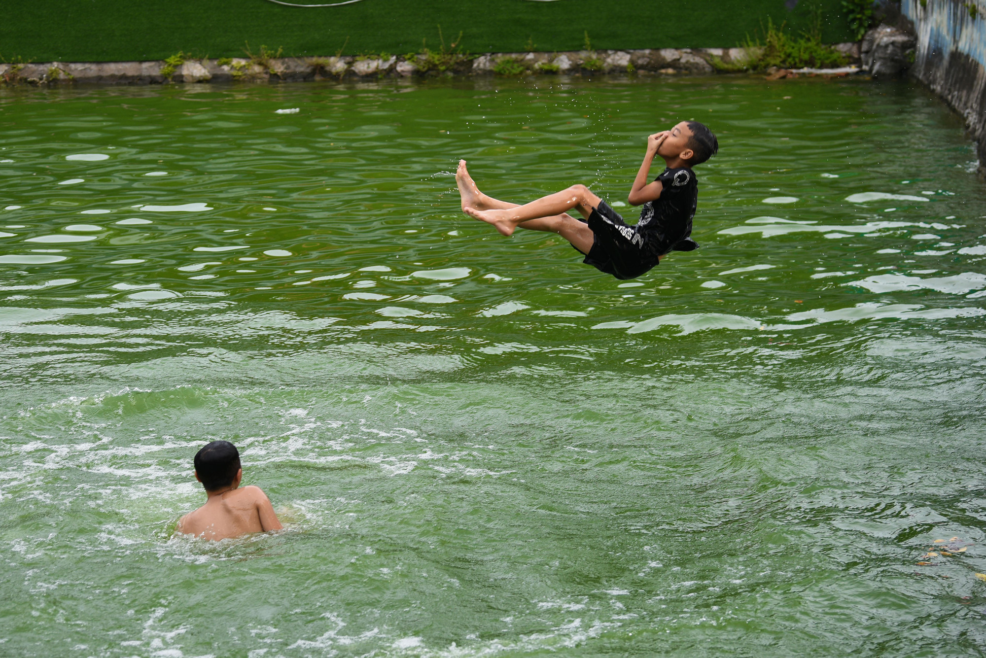 | Trẻ nhỏ thỏa sức nô đùa tại ao làng cùng bạn bè mỗi buổi chiều. |