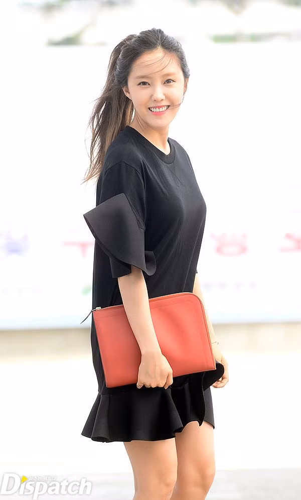 Dù không ăn diện quá cầu kỳ nhưng sự xuất hiện của Jiyeon đặc biệt gây chú ý. Cô có phần e thạn và xấu hổ khi đối diện với ống kính phóng viên kể từ sau tin tức hẹn hò với Lee Dong Gun.