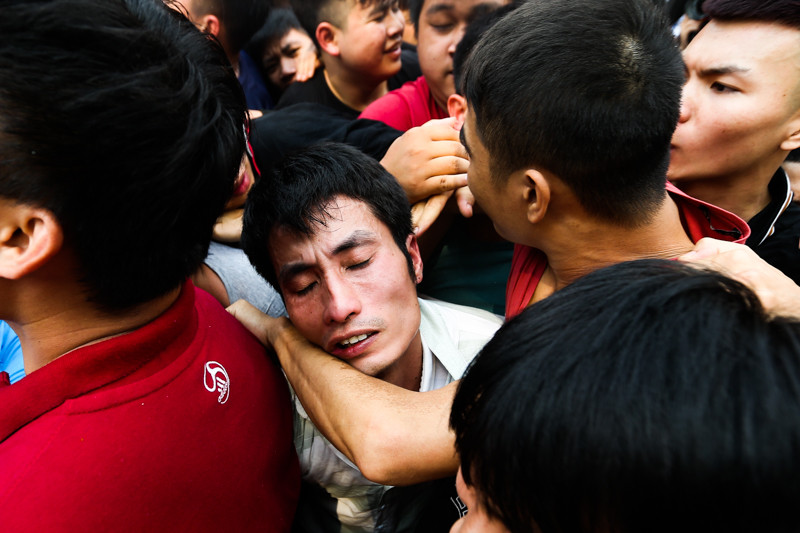 | Ngay đoạn tre đầu tiên được mang ra, nhiều hành động ẩu đả đã xuất hiện |