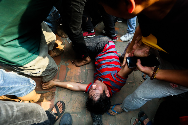 | Rất nhiều người kiệt sức khi tham gia giằng bông |