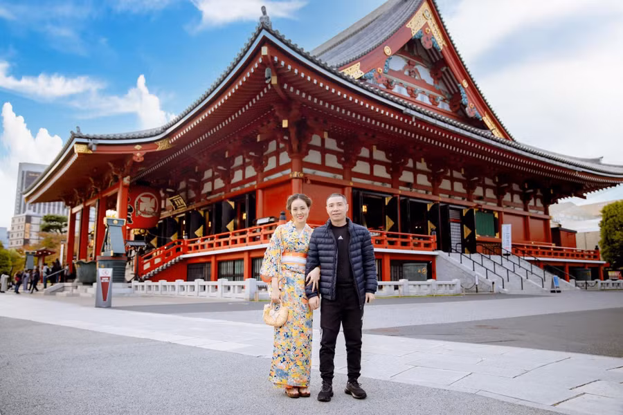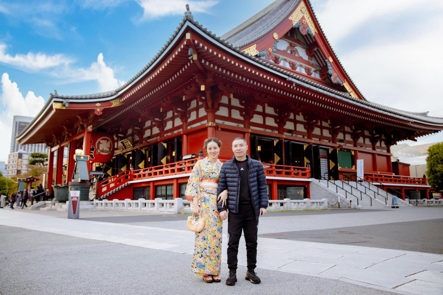 | NSND Công Lý và bà xã trong chuyến đi tới Nhật Bản. |