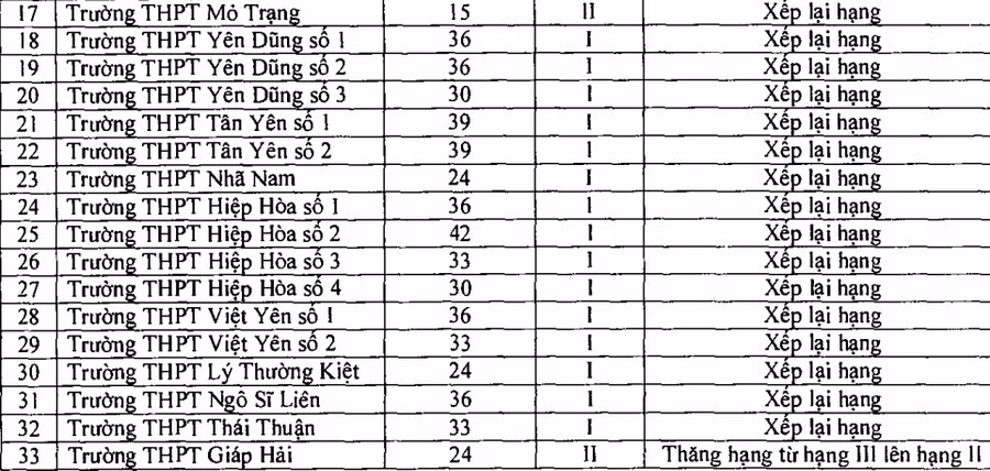 Theo đó, xếp loại hạng 1 đối với 30 trường; xếp loại hạng 2 đối với 2 trường; thăng hạng từ hạng III lên hạng II đối với 1 trường.