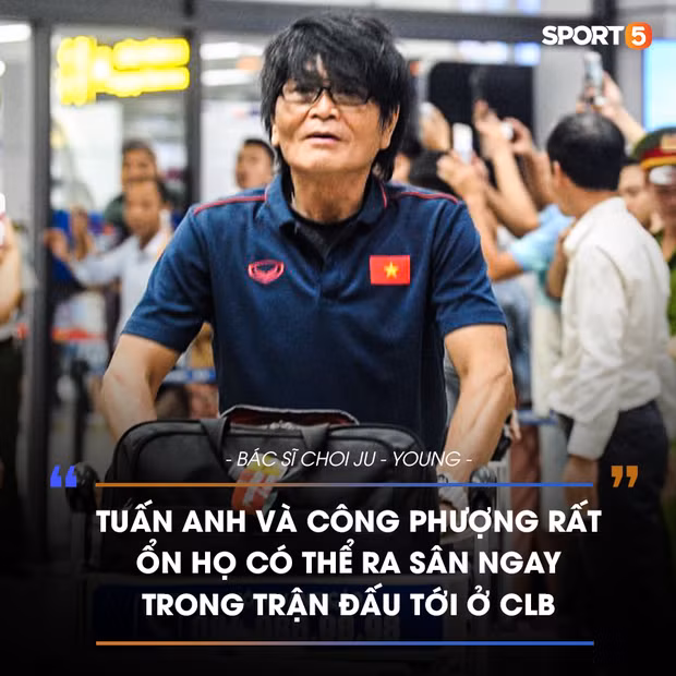 Ông Choi Ju-young cho biết: "Tuấn Anh và Công Phượng đều rất ổn. Họ có thể ra sân ở trận đấu tới". Dù đã hết thời gian tập trung tuyển Việt Nam nhưng các cầu thủ vẫn giữ liên lạc và cập nhật tình hình chấn thương đến cho các bác sĩ của đội tuyển để có phương án điều trị phù hợp với từng người.