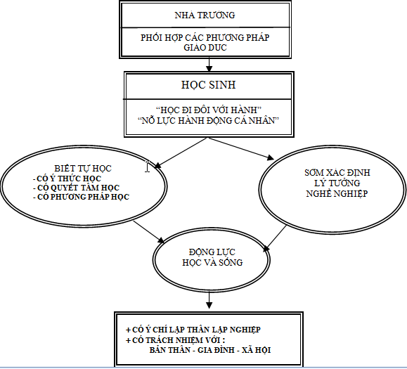 Cho biết chú trọng tổ chức giáo dục hướng nghiệp, tư vấn hướng nghiệp cho 100% HS của trường, TS Nguyễn Tùng Lâm khái quát con đường tạo cho HS của mình có động lực học, động lực sống theo sơ đồ sau :