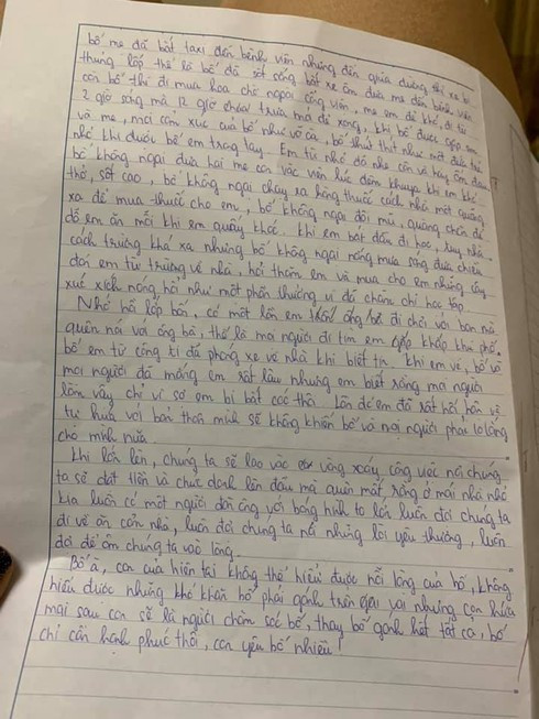 Bố à! Con của hiện tại không thể hiểu được nỗi lòng của bố, không hiểu được những khó khăn bố phải gánh trên vai nhưng con hứa mai sau con sẽ là người chăm sóc bố, thay bố gánh hết tất cả, con chỉ cần bố hạnh phúc thôi, con yêu bố nhiều!.