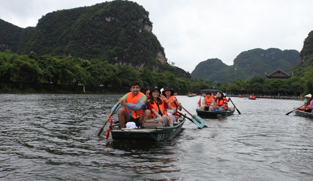 | Bạn bè quốc tế tham quan thắng cảnh Tràng An (Ninh Bình). |