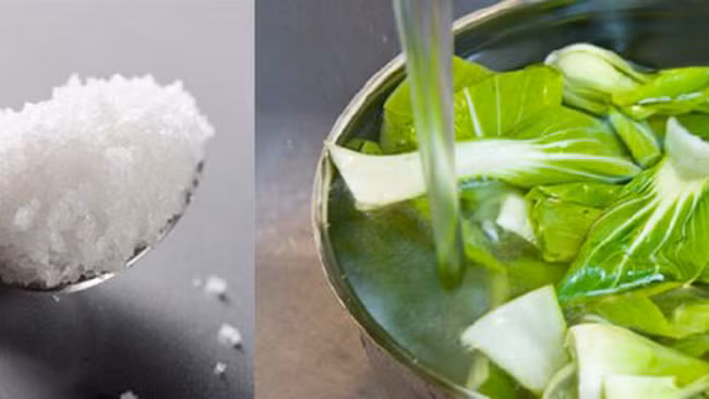 Trước khi chế biến bạn nên ngâm rau củ vào nước lạnh có pha sẵn muối. 15 phút sau hãy bỏ ra chế biến. Muối sẽ giúp làm sạch cát dính trên rau hoặc diệt khuẩn.