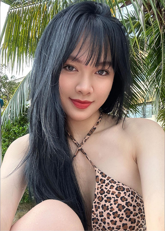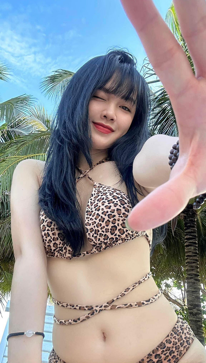 Nàng WAG 23 tuổi tự tin khoe vóc dáng bốc lửa trong bộ bikini màu da báo. Với bộ 2 mảnh nhỏ xíu, Quế Linh khiến các fan “đứng ngồi không yên” khi để hở vòng 1 đẫy đà.