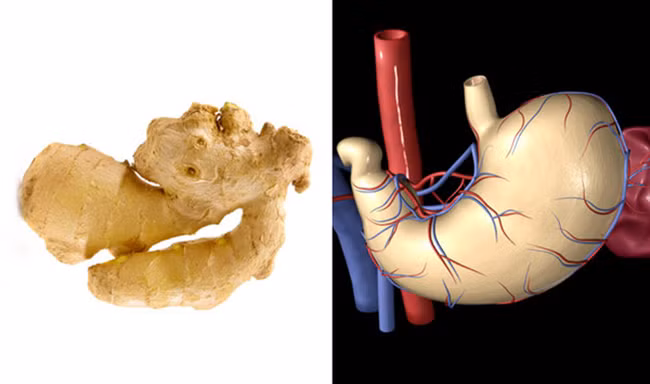 Gừng có hình dạng giống chiếc dạ dày và cực tốt cho tiêu hóa. Gừng cũng được sử dụng trong nhiều thập kỷ như một phương thuốc tự nhiên giúp dạ dày khỏe mạnh.