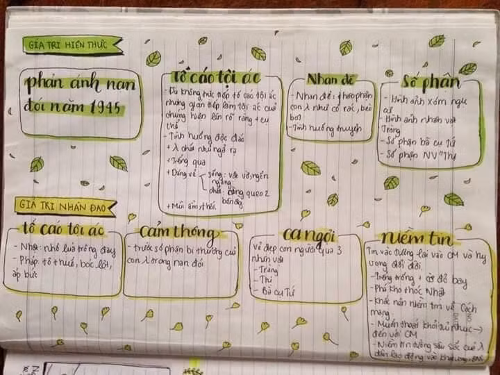 Vẫn là nhiệm vụ ôn luyện kiến thức, thế nhưng giờ đây quyển vở soạn văn trở nên sống động hơn hẳn nhờ những hình vẽ bay bổng, sáng tạo và đẹp mắt.