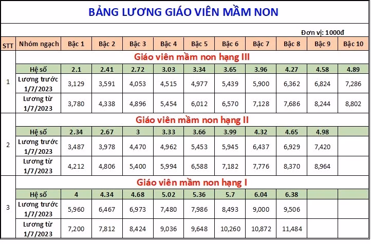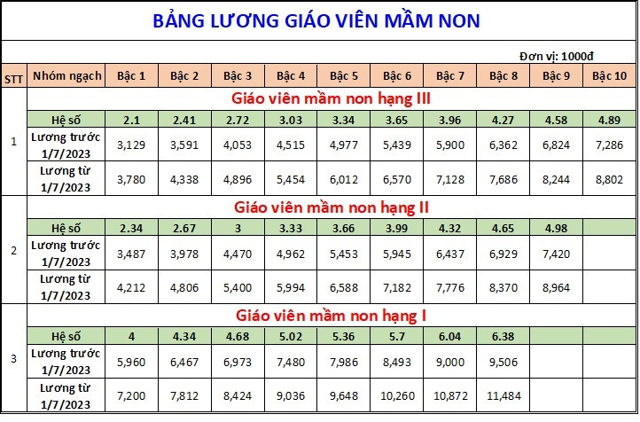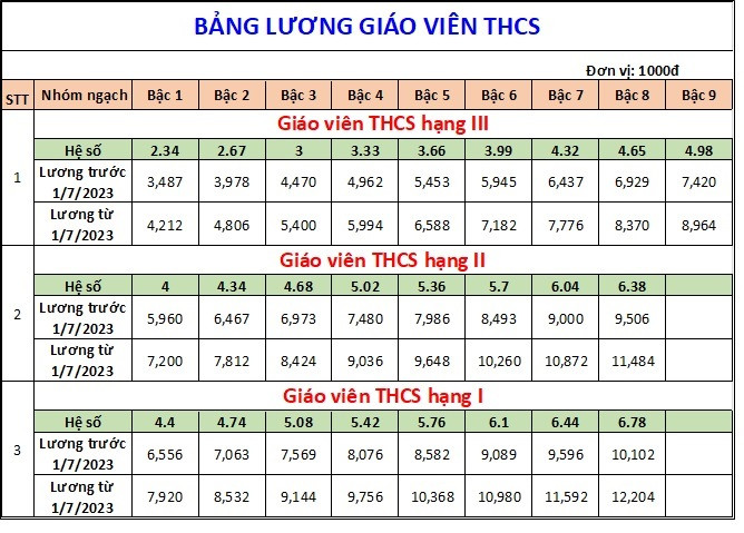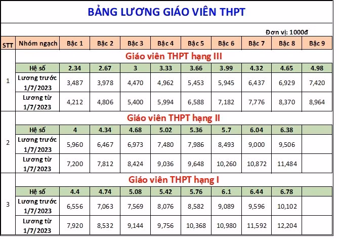 Trên cơ sở đó, bảng lương của giáo viên sẽ thay đổi như sau: